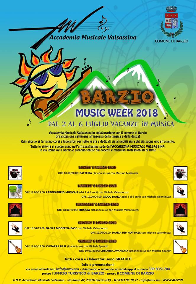 L’Accademia Musicale Valsassina, in collaborazione con il comune di Barzio, organizza da lunedì 6 a venerdì 10 luglio una settimana all’insegna della musica e della danza.