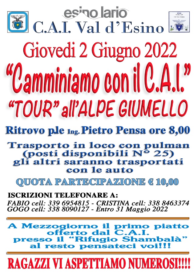 Il Cai Val d’Esino ed il Comune di Esino Lario organizzano per giovedì 2 giugno un tour all’Alpe Giumello.
