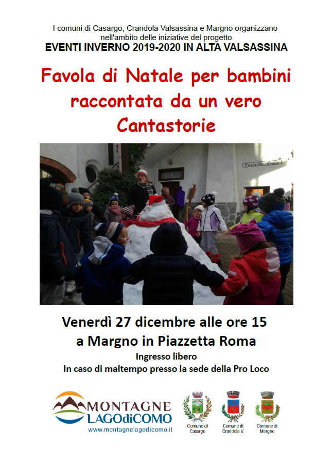 Nell’ambito degli appuntamenti invernali Eventi Alta Valsassina Inverno 2019/2020 organizzati dai comuni di Casargo, Crandola Valsassina e Margno, viene organizzato un momento ricreativo per tutti i bimbi a Margno.