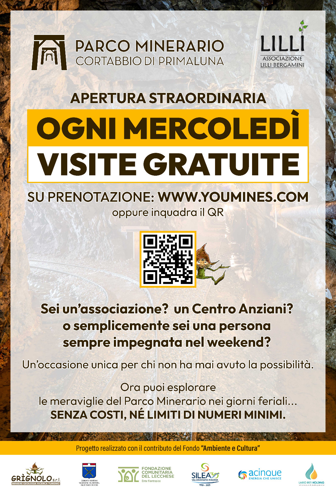 👉 Le visite sono gratuite, ma è necessaria la prenotazione su www.youmines.com oppure inquadrando il QR code.