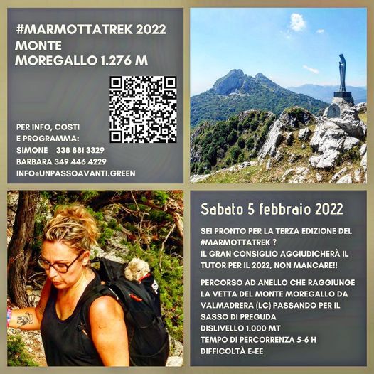Unpassoavanti.green – Mountain events e trekking organizza per Sabato 5 Febbraio 2022 la terza edizione del Marmottatrek su un percorso ad anello che raggiunge la vetta del Monte Moregallo da Valmadrera.