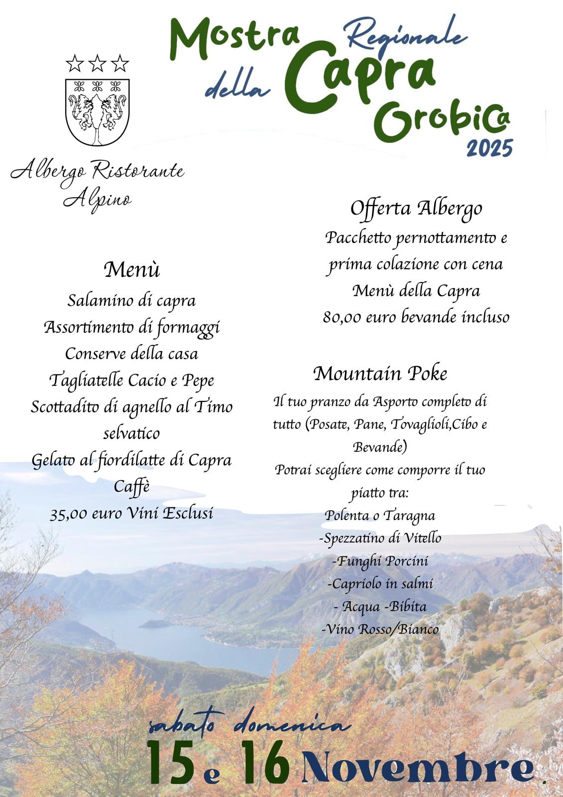 L’Albergo Alpino di Casargo, in occasione della Mostra regionale della Capra Orobica, ha pensato a proposte e menù dedicati, con possibilità di pernottamento e pranzo d’asporto.
