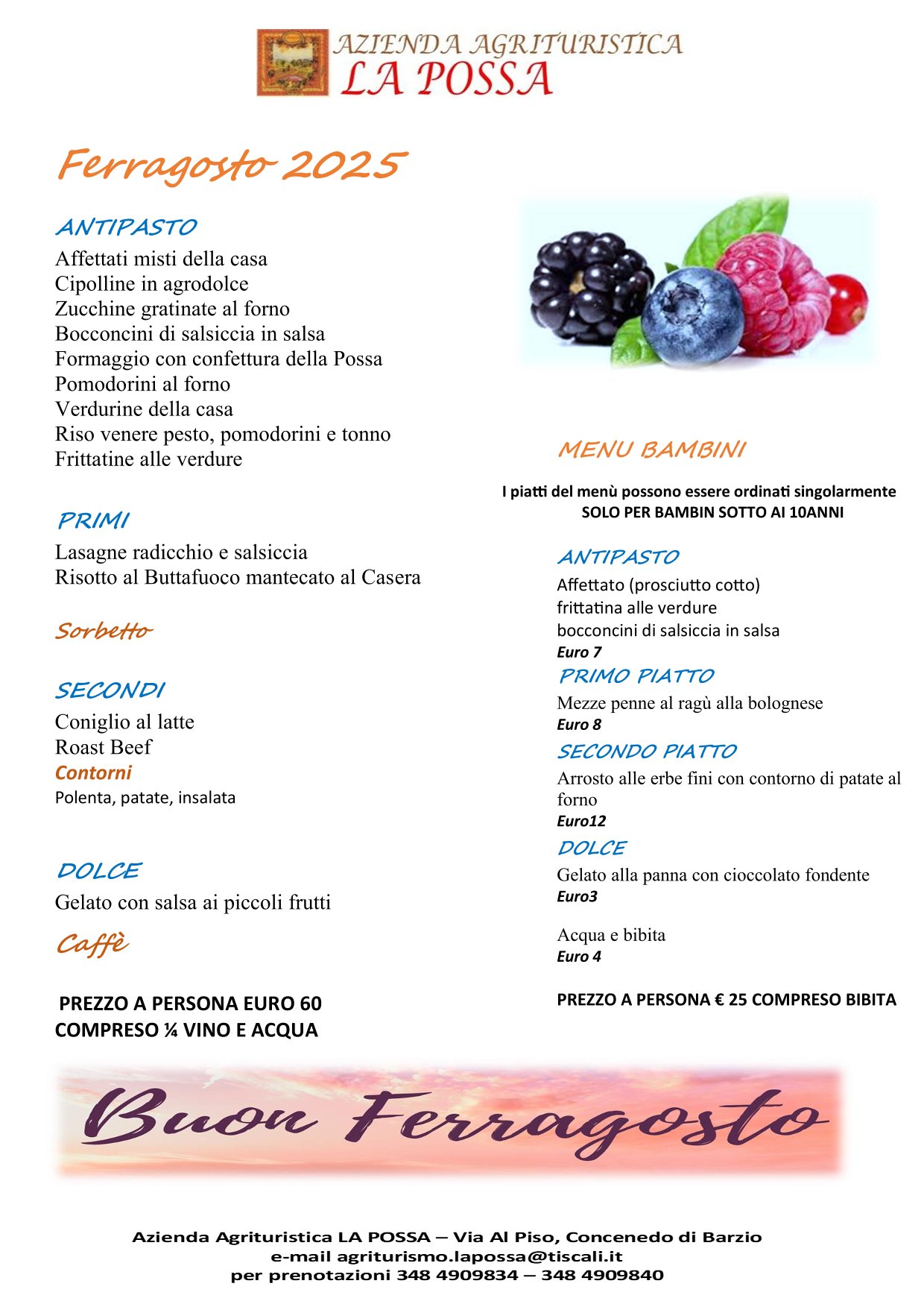Vieni all’Agriturismo La Possa a trascorrere il tuo Ferragosto: scopri il menù!👆🏼