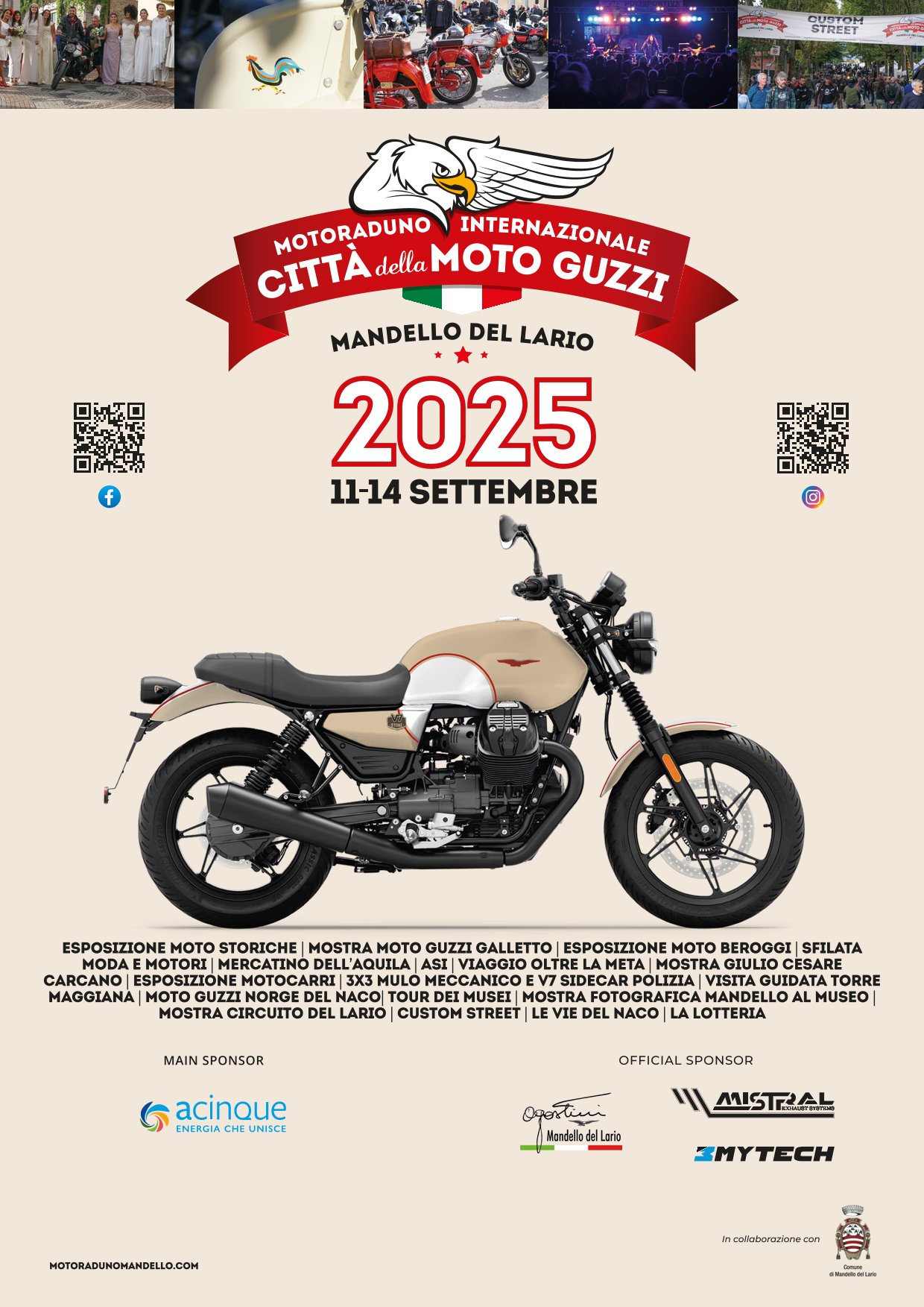 Dall’11 al 14 settembre, Mandello del Lario ospita l’annuale Motoraduno Internazionale Città della Moto Guzzi.