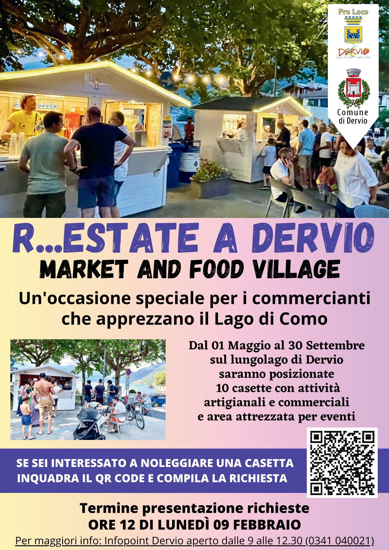 Durante la stagione estiva, Dervio offre un’occasione speciale per i commercianti che apprezzano il Lago di Como: 10 casette saranno posizionate sul lungolago dal 1 maggio al 30 settembre 2026!