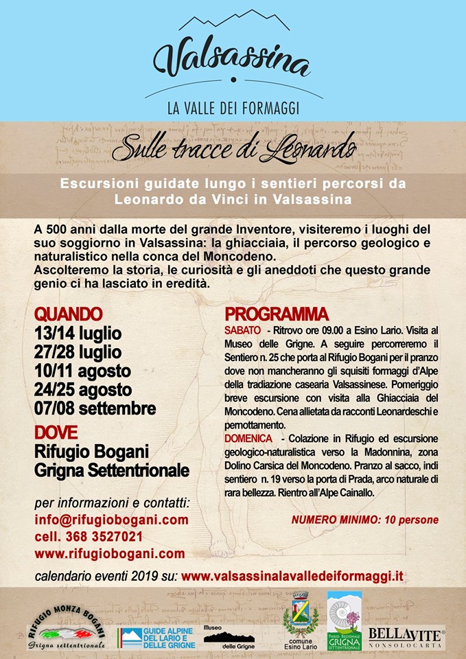 Il Rifugio Monza-Bogani organizza escursioni guidate lungo i sentieri percorsi da Leonardo da Vinci con visita al museo delle Grigne e alla Ghiacciaia del Moncodeno!